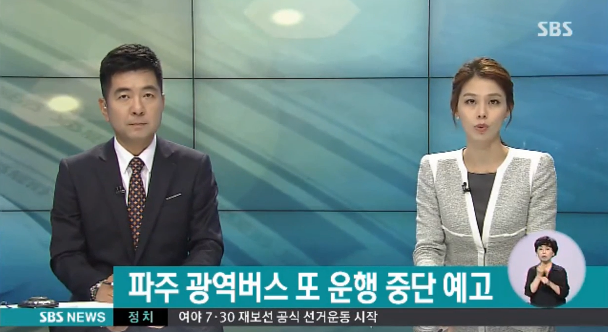 14.07.17 SBS 뉴스퍼레이드 운정신도시 m버스 운행중단 뉴스
