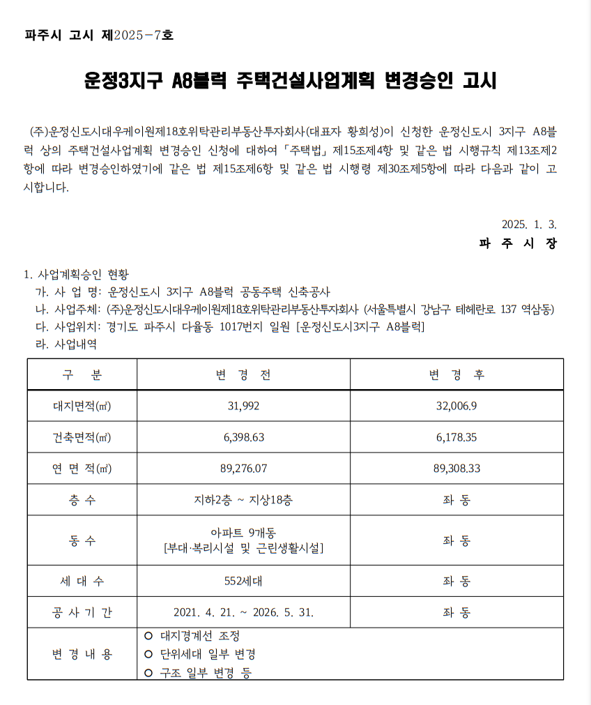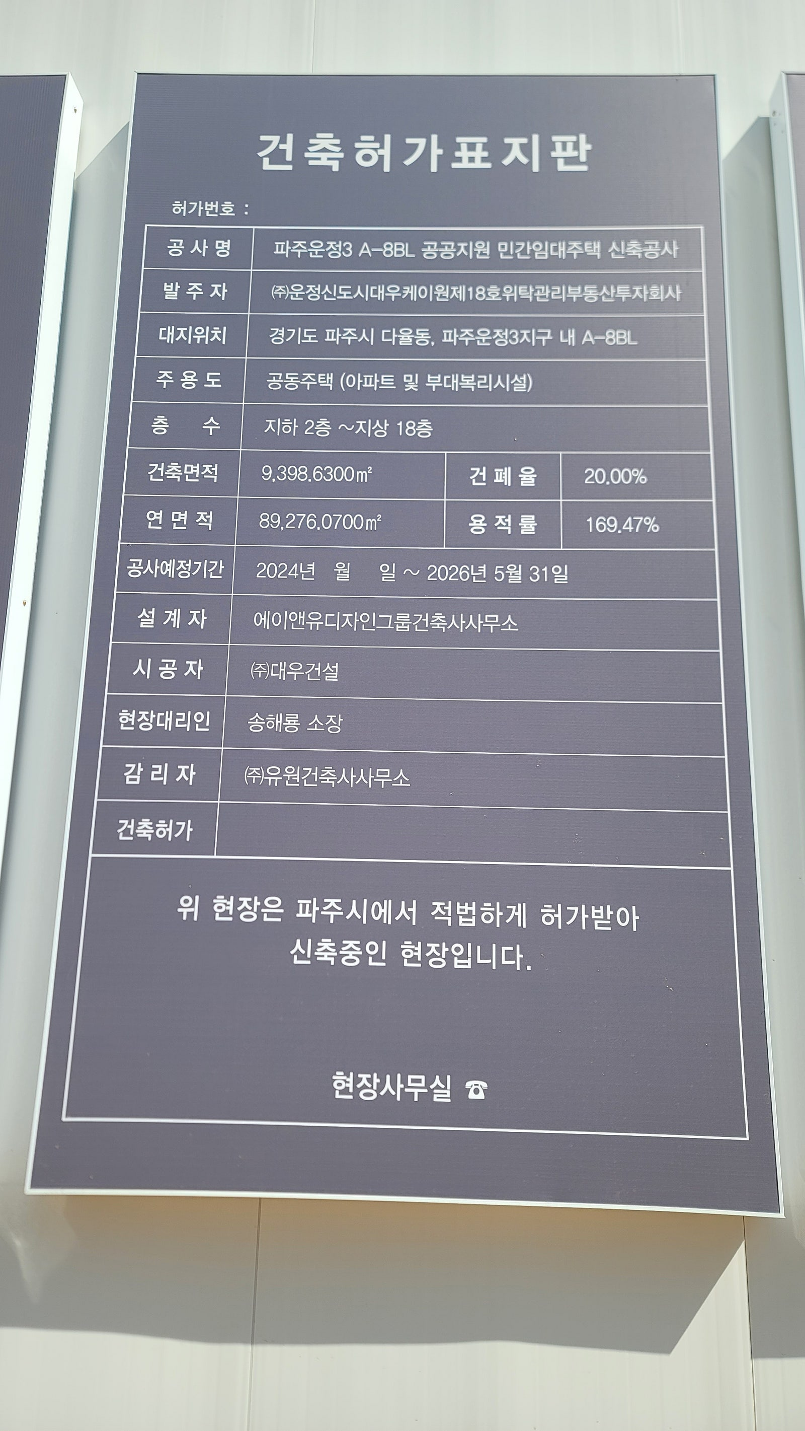 - 소재지 : 경기도 파주시 다율동 69-2번지 일대(파주운정3지구 A-8블록)
