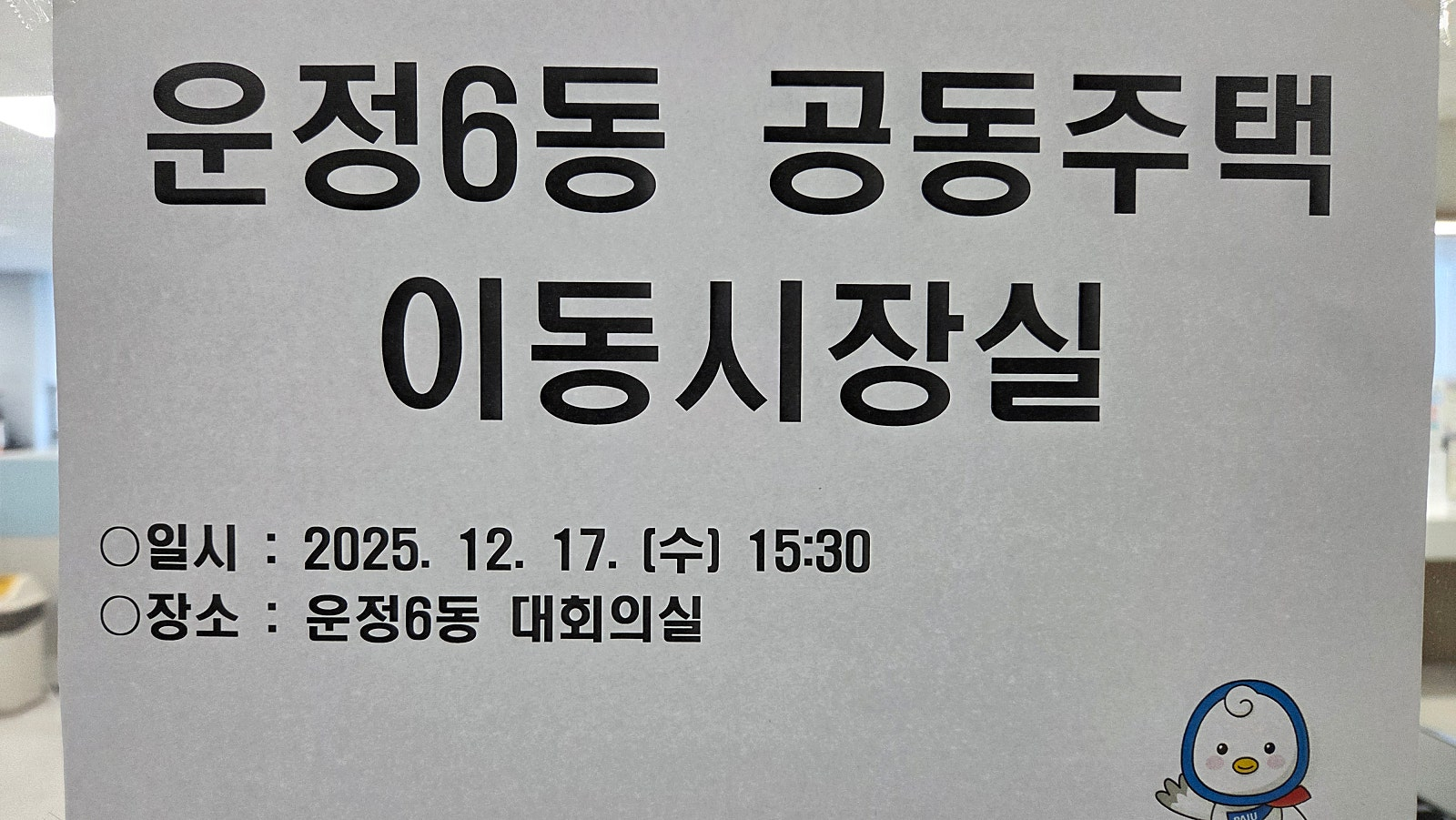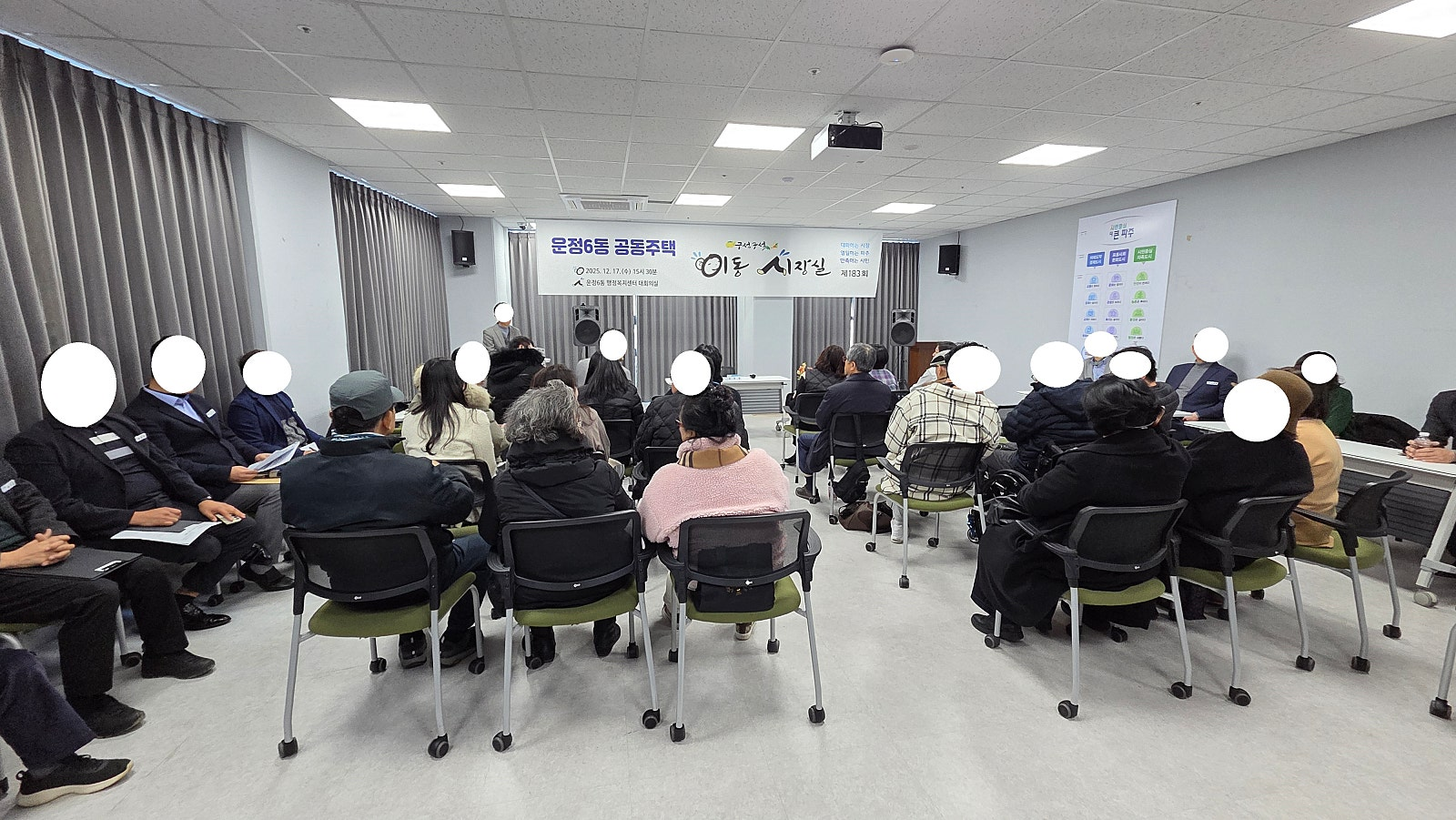 추가로 지난번 운정연에서 파아연, 파주맘, 운정6동 초롱꽃마을 대표분들 및 물향기마을 입예협 대표분들등 파주시에 요청한 운정6동 공동주택 이동시장실이 금일 12월 17일(수) 15시 30분~17시 운정6동 행정복지센터 대회의실에서 진행되었고 약 30여명의 주민분들과 김경일 파주시장님을 비롯한 파주시 각 부서장 분들이 참석해 주셨습니다.
