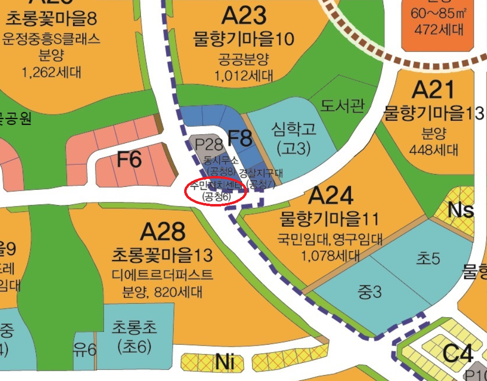 현재 공청8 운정6동 행정복지센터 부지에 운정6동 행정복지센터가 있고 기존 협소한 공청6 소방파출소 부지를 소방서측에서 매입포기하여 잉여 주민센터 부지로 용도가 변경되어 현재 운정6동 행정복지센터 건립을 위한 가설사무소 및 자재 보관 장소로 사용중에 있는 상황입니다.
