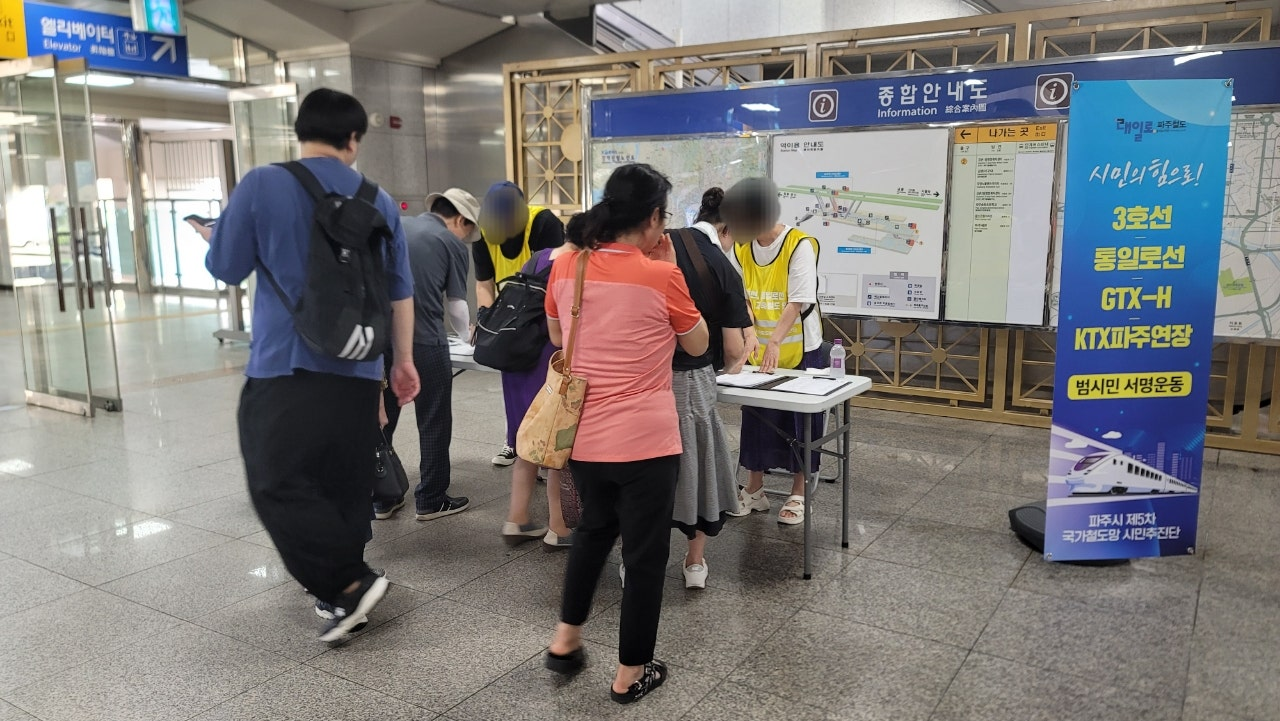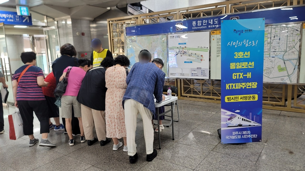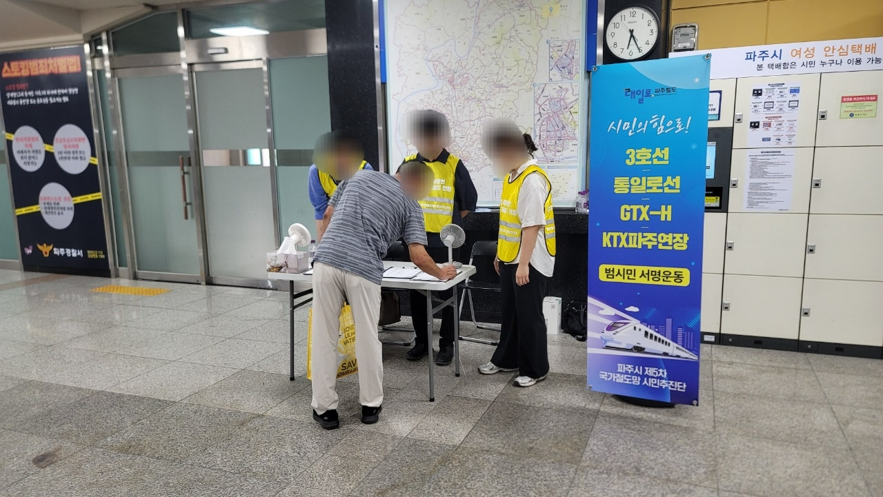 [24.08.13]지금 이시간 현재 지하철 3호선등 제5차 국가철도망 반영, 경과원 파주 정상이전, 운정경찰서 신설 위한 서명운동 현장사진