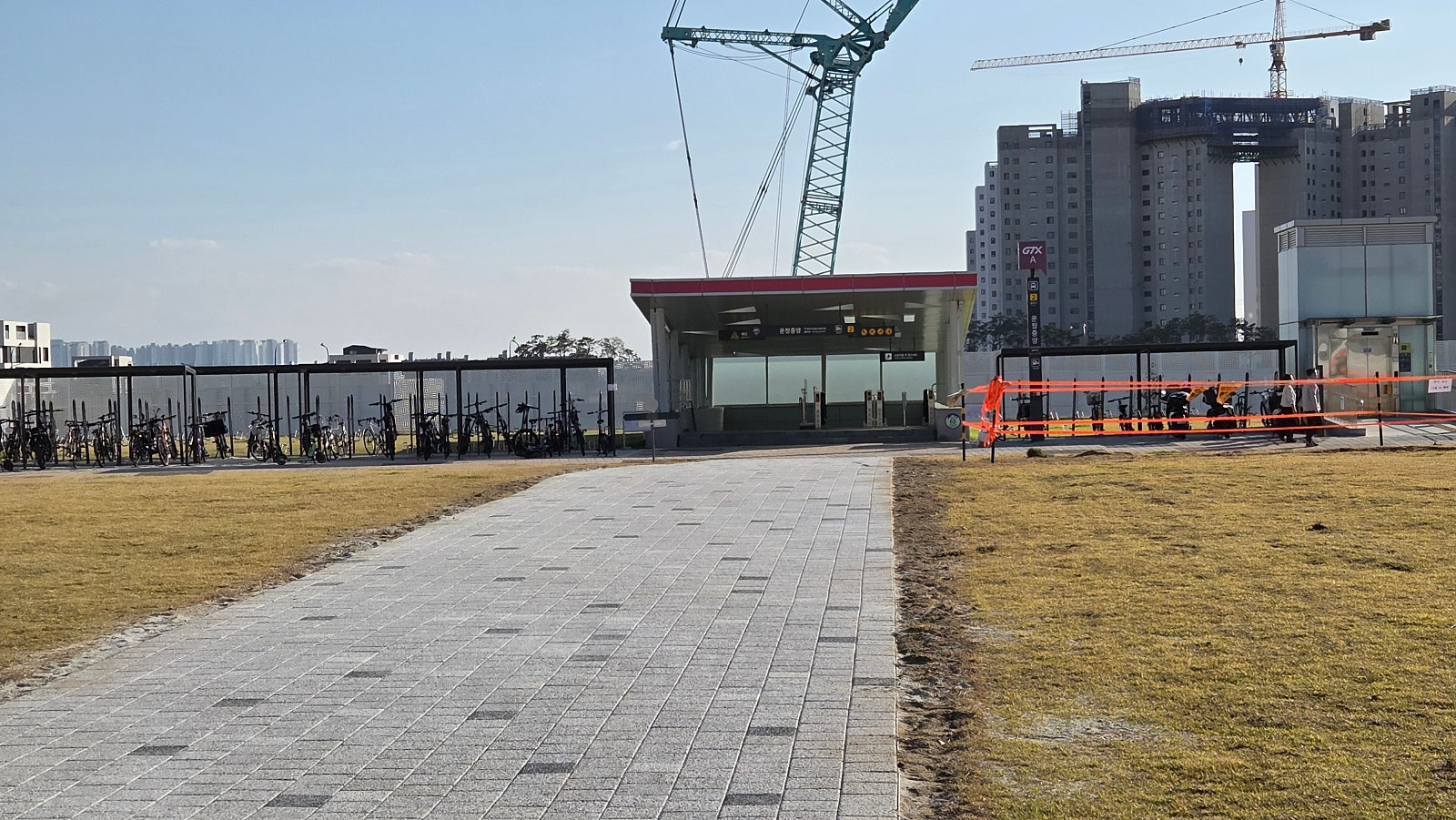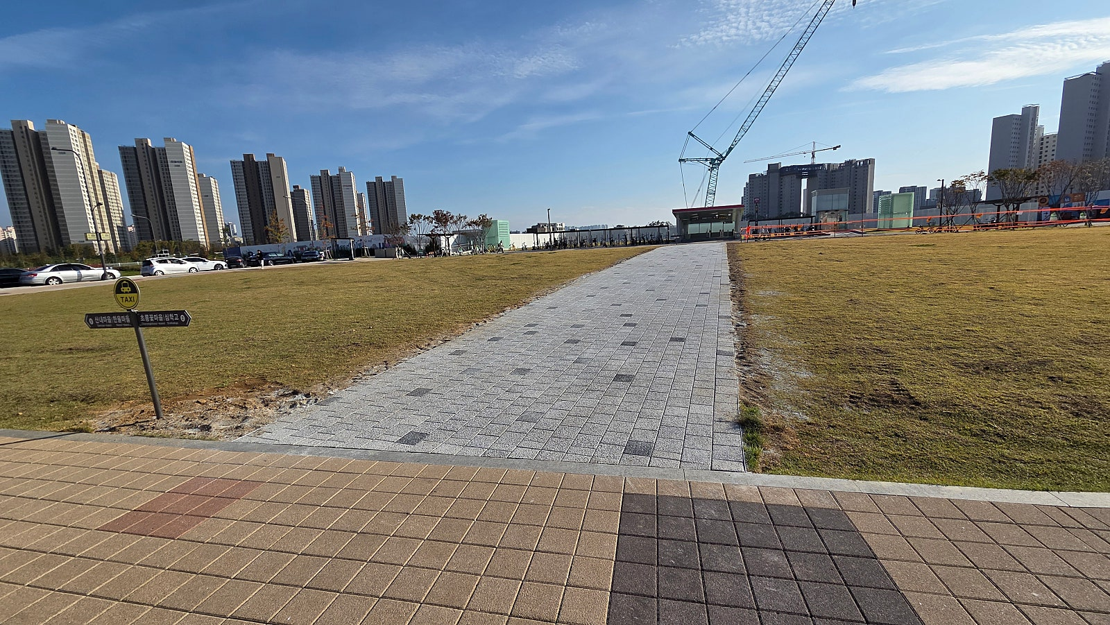 [25.10.25] GTX 운정중앙역 1,2번 출구 연결 상부 잔디광장 중앙에 보행로 조성 공사후 현장사진