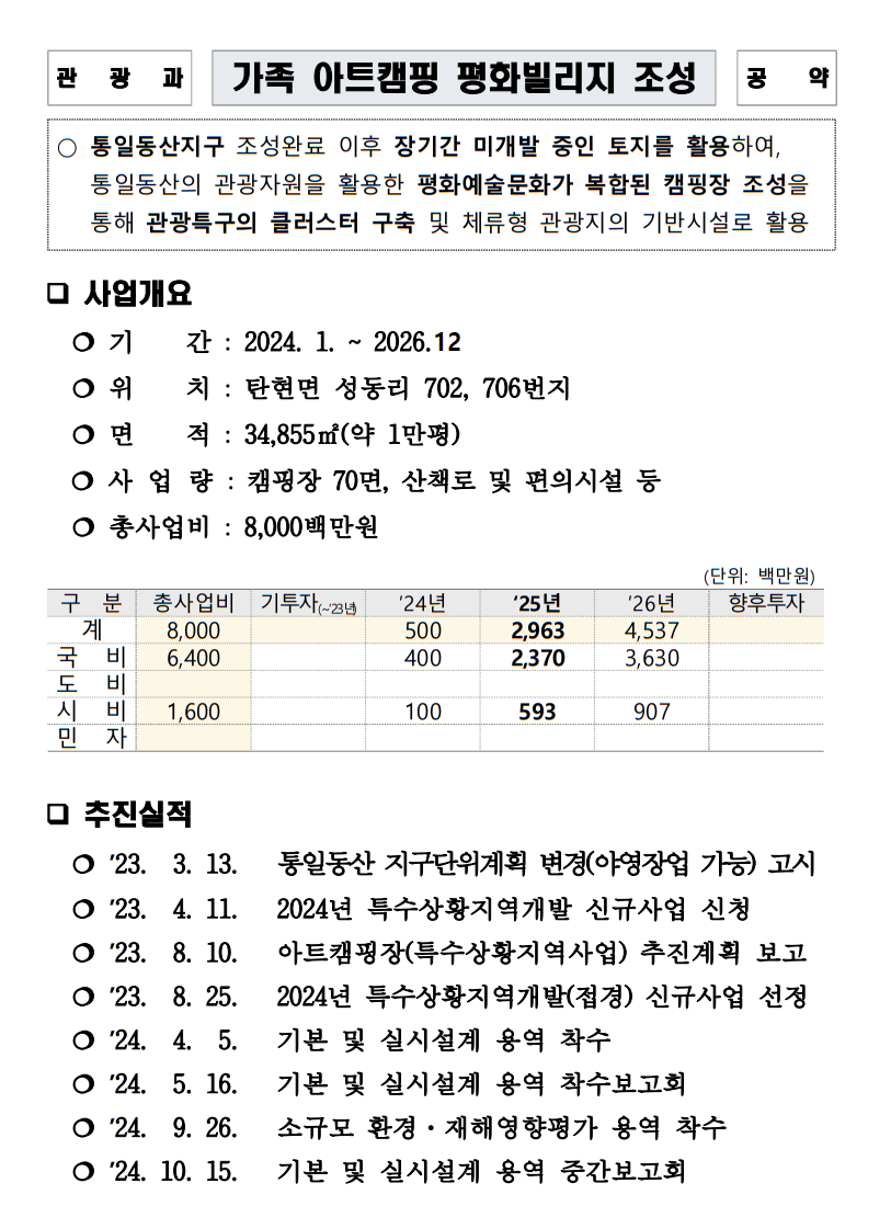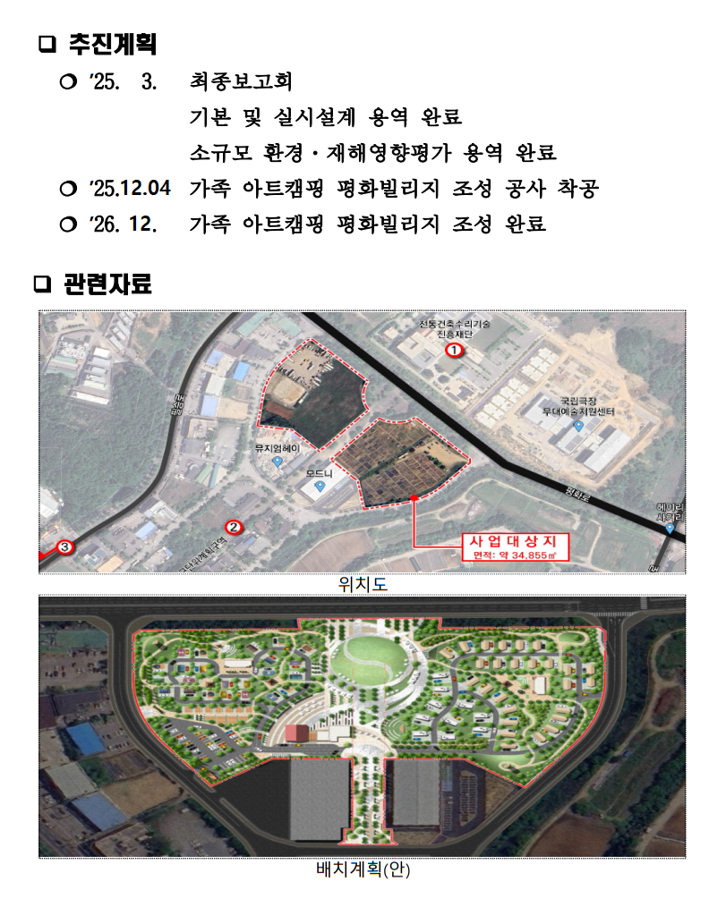 [25.12.20] 12월 4일 착공한 운정신도시 인근 통일동산지구내 가족 아트캠핑 평화빌리지 조성 사업개요 및 추진계획