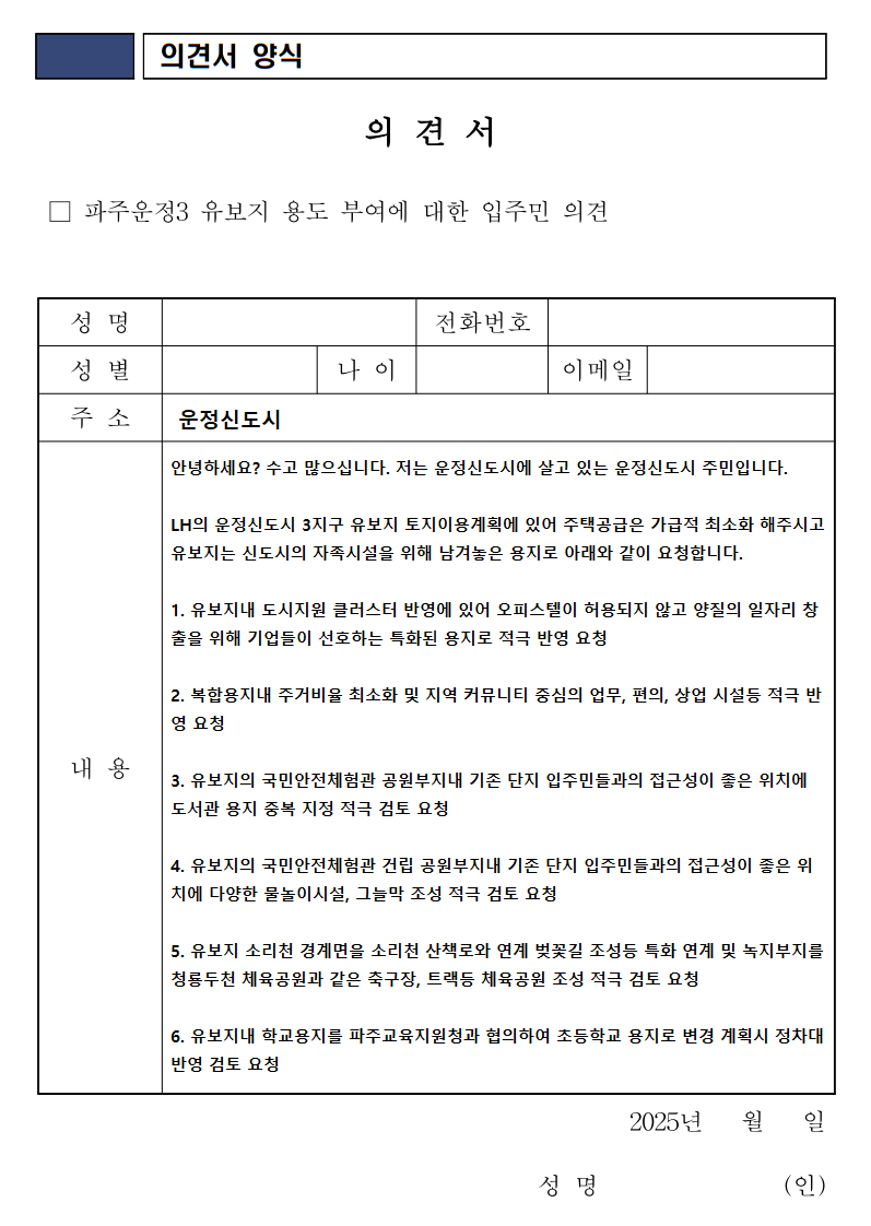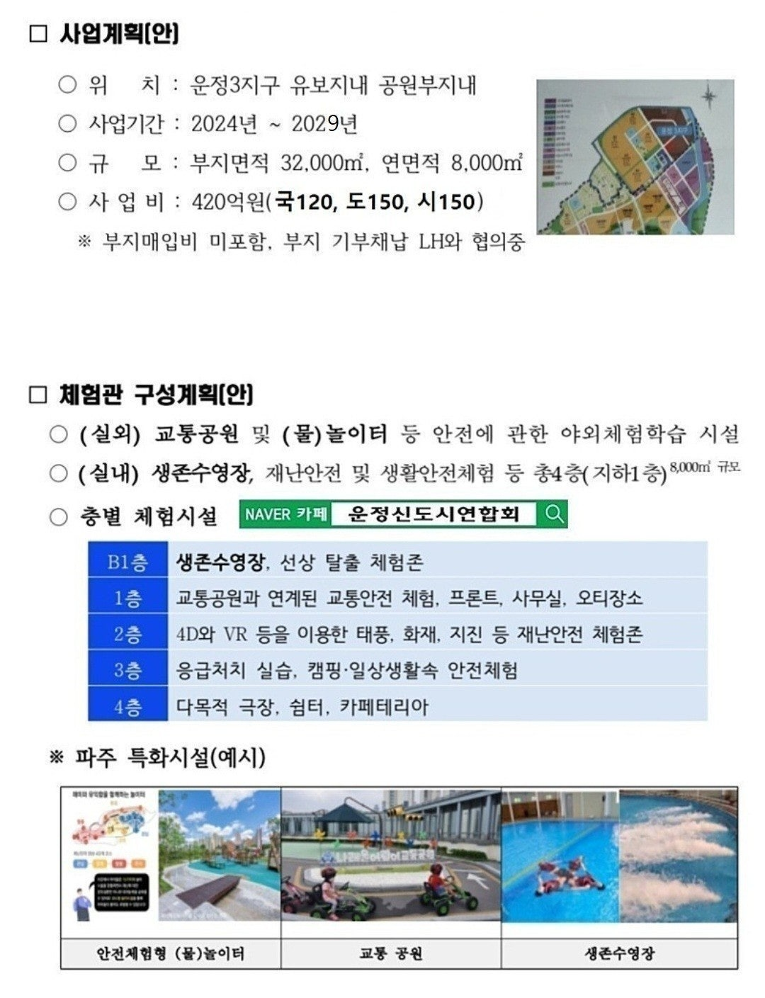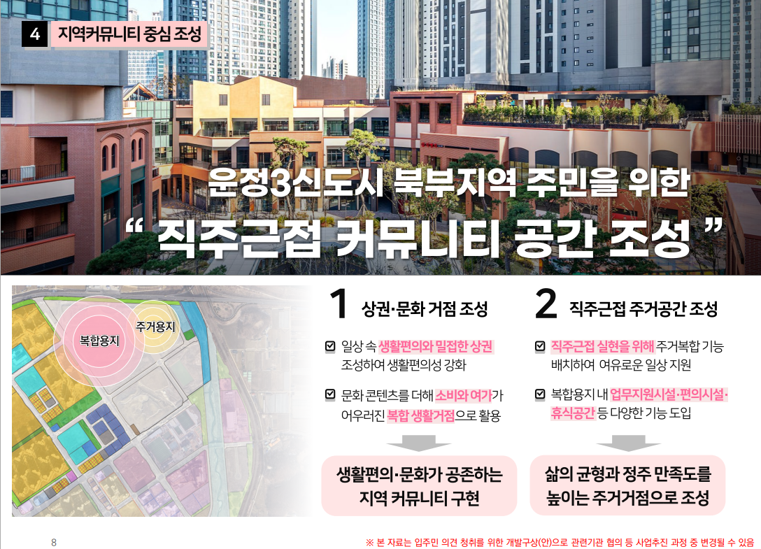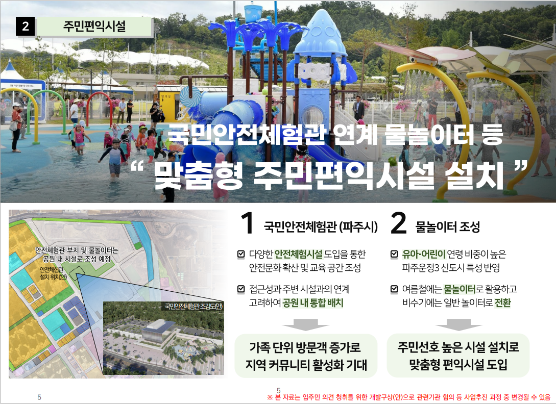 4. 이미 확정된 국민안전체험관 외 운정연에서 LH에 요청하였던 유보지내 주민 편의시설 90% 이상 반영 예정