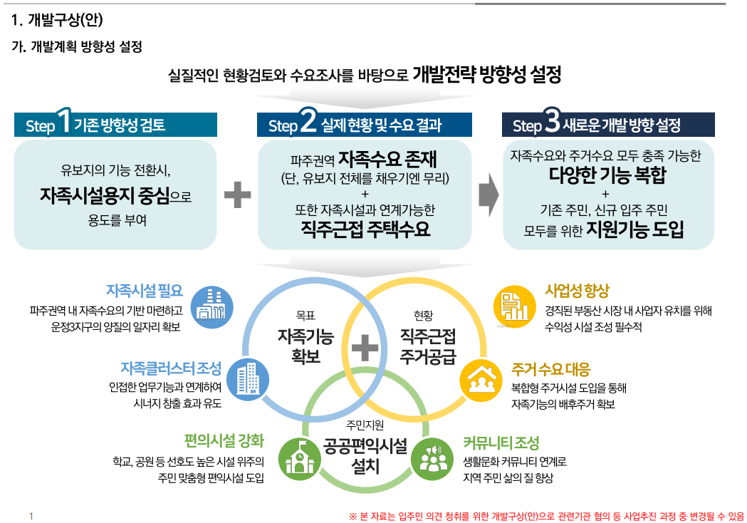 지난 9월 16일 운정연에서 유보지 개발구상 방안에 대해 LH와의 간담회 당시 요청하였던 도시첨단산업단지,