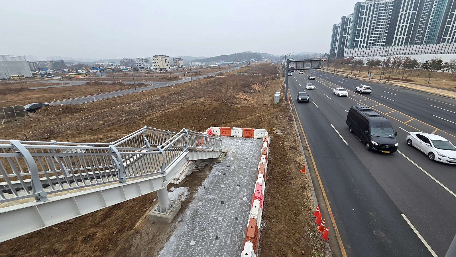 [25.12.30] 드디어 금일 오후 별하람마을 와동보도육교 계단 개방 현장사진(난간조명 설치등 조건부 인수인계 협의로 엘리베이터는 입구 바닥 콘크리트 미장 완료후 이번주중 개방 예정)