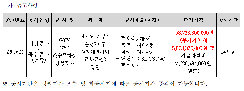 [25.11.24] 2026년 11월 준공예정 GTX 운정중앙역 남북 양방향 지하환승주차장 건립공사 현장사진