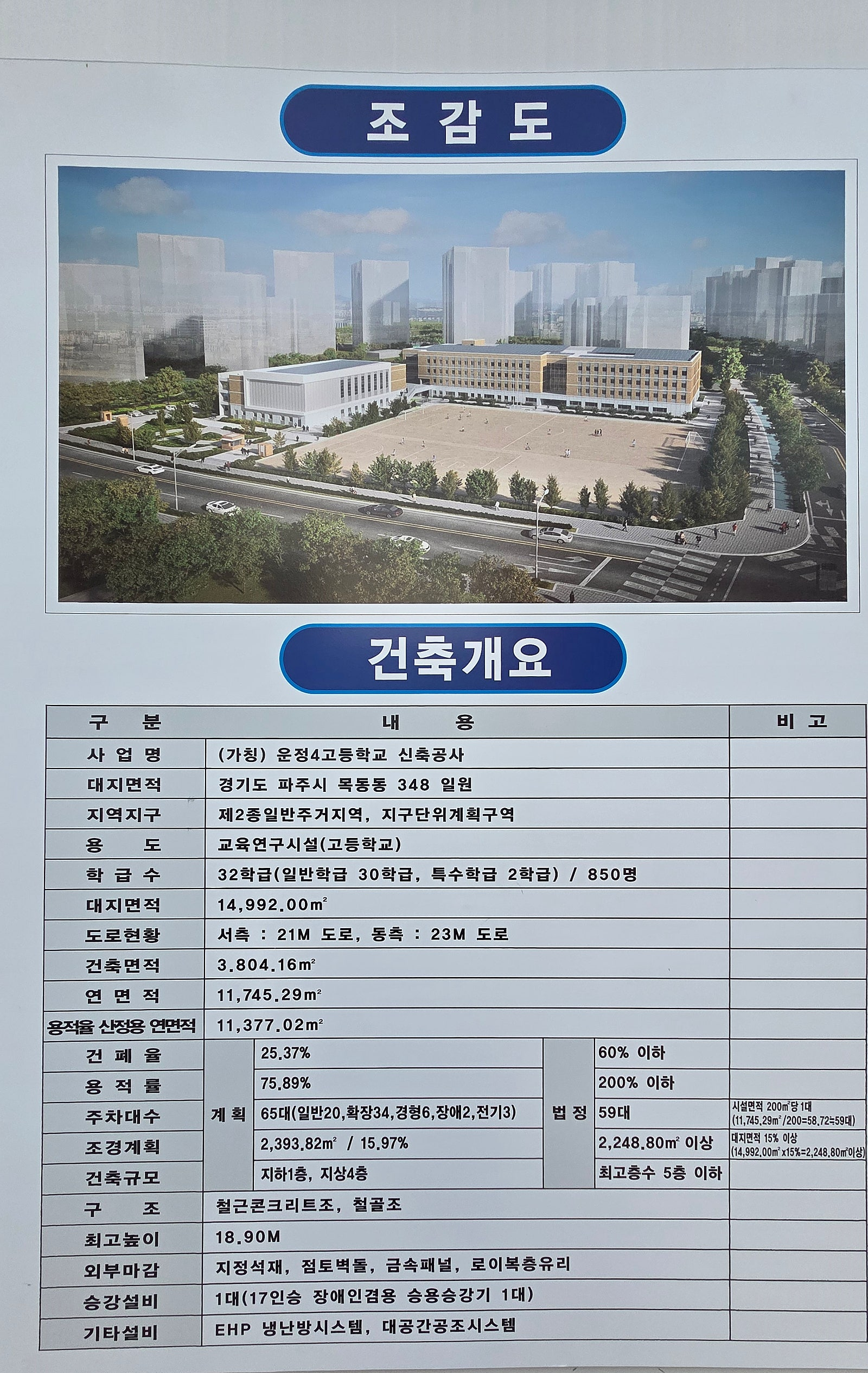 [25.11.25] 2027년 3월 개교예정 운정4고(일반30급, 특수2학급) 신설학교 착공후 공사현장 사진 및 조감도